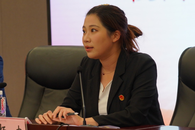 大会第二项,学保处常务副处长包静波致词,包老师首先对新入团学生表示祝贺,希望新团员能传承和发展优良的团学工作文化和基础,有活力、有朝气的不断发挥青年学生的榜样力量,既履行好个人的团员身份,又注重团体组织建设。包处长希望团干部要提高个人研究能力、吃苦能力以及创新能力,依靠集体的力量,做好工作的部署,从而真正从思想上、行动上积极向党组织靠拢。