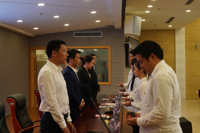 全体新团员们举起右拳,用最洪亮的声音,庄严宣誓,以崭新饱满的精神面貌,向团组织表明决心。团干部们通过重温誓词,牢记团的誓言,激发做一名团干部的光荣感和责任感,增强为共产主义奋斗的信念。