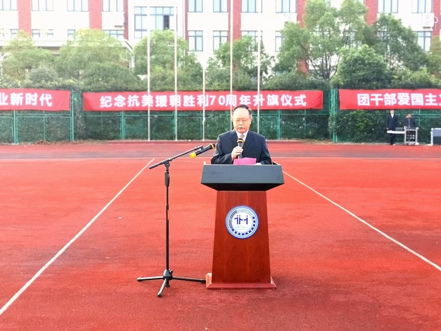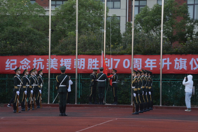 在全国上下纪念抗美援朝战争70年之际,为在当代团干青年中弘扬以爱国主义为核心的抗战精神和红色文化,铭记英雄前辈,培育学生的民族精神和社会主义核心价值观,增强学生的历史使命感。2020年10月23日早上7点,“弘扬爱国奋斗精神,建功立业新时代”——团干青年爱国主义教育升旗仪式在我校大操场隆重举行。校党委副书记、学保处处长曹云林,学保处副处长刘洪伟、邵海波,学保处副处长兼校团委书记杨央,各二级学院党总支书记、分团委书记、全体正副辅导员、各学院新入团团员、校学生会全体成员及2020级部分学生参加仪式。仪式由学保处常务副处长包静波主持。