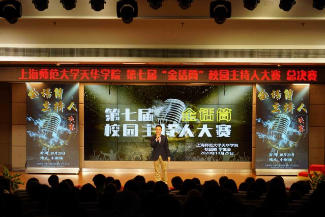 用话筒展现自我,用精彩点亮青春!2020年10月29日下午16:30,第七届“金话筒”校园主持人决赛在晖华楼小剧场拉开帷幕。出席本次活动的评委老师有:通识学院副院长聂晓晶,学保处副处长、校团委书记杨央,学前教育学院专业教师孙娜博士,学前教育学院党总支副书记朱可,各二级学院分团委书记及学生代表到场观看比赛。