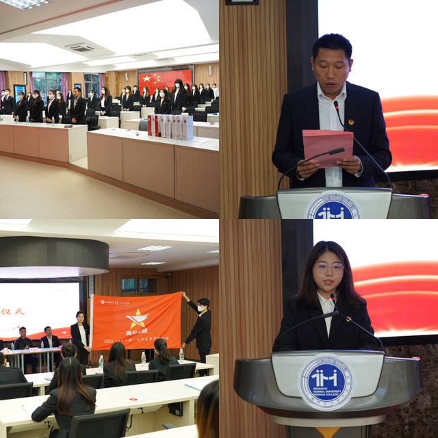 校团委副书记王晓亮介绍本期“青马工程”的培训安排,校学生会主席团成员杜靖阳同学作为学员代表发言,学保处副处长、校团委书记杨央向学员代表授旗。