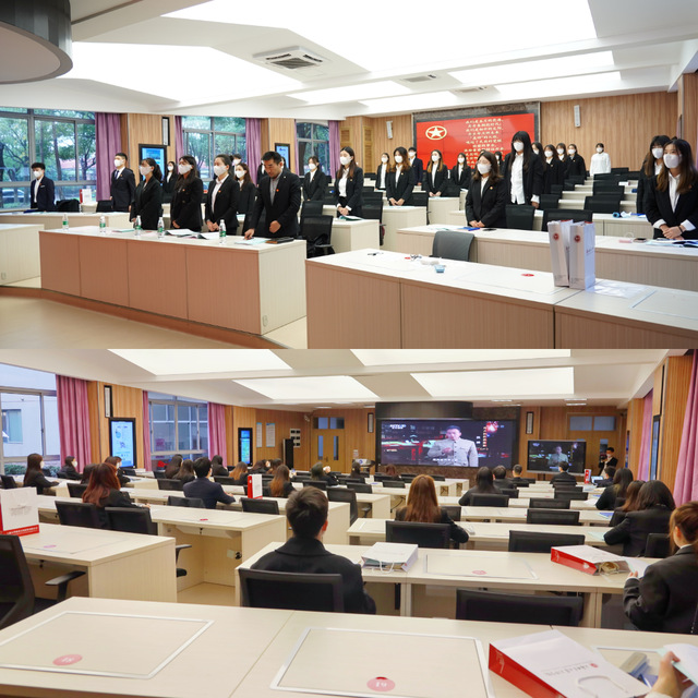 最后在全体学员奏唱团歌中仪式结束,随后进入理论课堂培训环节。第一讲采用视频学习的方式,学员们共同观看了《伟大的抗美援朝》第一集。该纪录片最大限度地还原历史的本真,视频结束之后大家表示收获满满:在做好学生工作的同时,更要培养大局意识,心系社会和国家,时刻准备好为祖国做出自己的贡献!