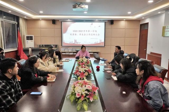 团委副书记沈捷对本学期开展活动进行总结,提出活动开展中的优点和需要改进的方面,指出应不断创新活动形式从而丰富校园文化。