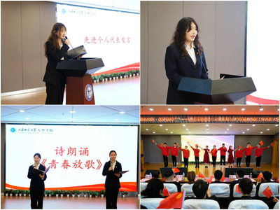 会上,初等教育学院的优秀团支书王怡婷从三个方面介绍了班级支部建设工作和工作心得。学前教育学院学生会主席朱祎同学代表“五四红旗团委”获奖单位发言,就学前教育学院当前团学工作中学生思想道德建设、第二课堂活动建设以及如何结合专业特点开展团学工作进行经验交流分享。