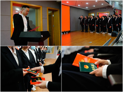入团仪式在庄严的国歌声中拉开序幕,校团委副书记王晓亮宣读新入团成员名单,并说明举行入团仪式的意义;校团委书记杨央为新团员颁发团徽、团章和团员证;校团委副书记沈捷作为领誓人带领新团员们面向团旗进行宣誓。新团员们用坚定的誓言表达了成为一名共青团员的责任和担当,以崭新饱满的精神面貌,向团组织表明决心。