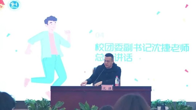 会议最后,校团委副书记沈捷老师在总结致辞中充分肯定了我校学生社团的建设发展情况,他指出需积极响应活力天华发展理念,提高各社团举办活动的积极性,并形成社团品牌特色,打造过硬的社团品牌,进一步丰富校园文化内涵,为“活力天华”留下浓墨重彩。