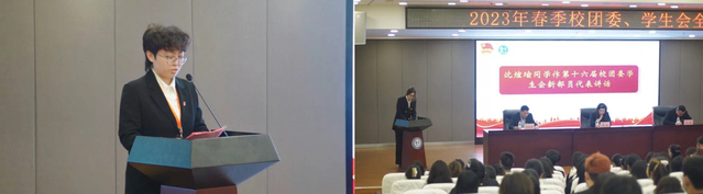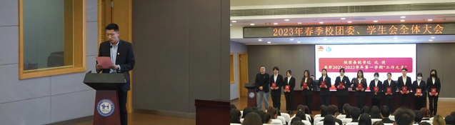 随后,校团委副书记王晓亮宣布2022-2023学年第一学期“工作之星”名单。校团委副书记沈捷为“工作之星”代表颁发证书。