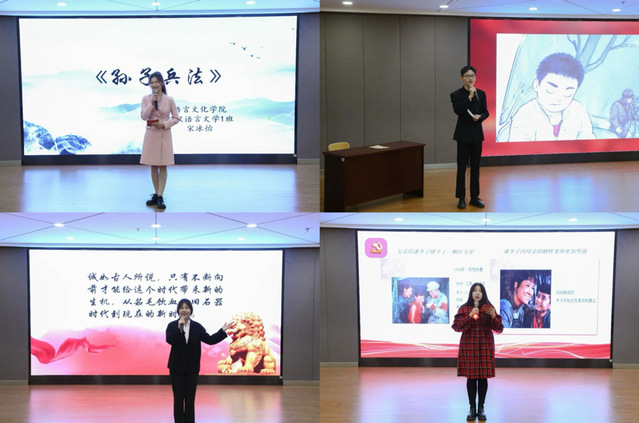 《青春之歌》中青春或轰轰烈烈,或平淡如水;《闪闪的红星》揭示青年如初日,少年不畏险阻,以慷慨热烈的陈词,宣告着青年人积极乐观的态度;《佛陀的智慧》为我们启示超越自我追求内心,引人深思;《三国演义》也时刻提醒着我们,志当存高远,论三国之感悟,儿女情长,热血豪迈,令在座动容。其余篇章亦动容,为我们缓缓诉说着中华经典的起承转合。参赛选手们将真挚饱满的情感融入到韵味悠远、意境绵长的经典篇章中,或低沉吟诵、悠扬婉转,或慷慨激昂、气势磅礴,或抑扬顿挫、声情并茂,以精彩纷呈的演绎在观众眼前打开了一副波澜壮阔的历史画卷。