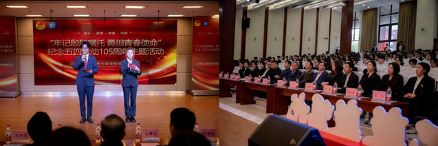 为全面贯彻落实党的二十大精神和习近平总书记关于青年工作重要思想,激励和动员全校广大团员青年继承和发扬五四精神,全面展现青年奋发进取地精神面貌,4月29日,“牢记殷殷嘱托,勇担青春使命”纪念五四运动105周年主题活动在晖华楼小剧场隆重举行。