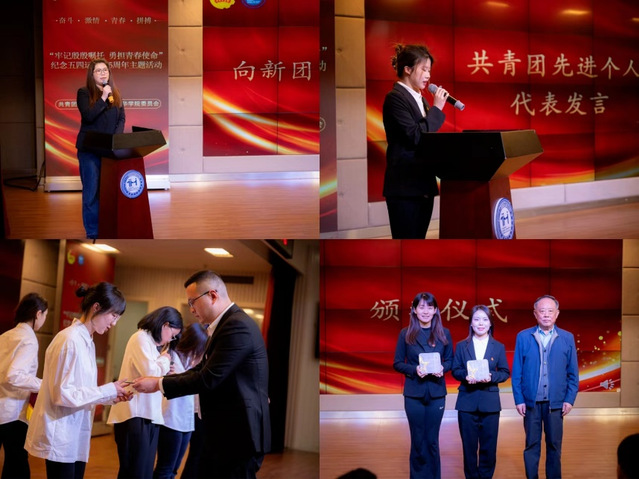 大会在庄严的国歌声中拉开帷幕,新团员代表领取团徽、团员证,在优秀团员代表带领下进行宣誓,李佳翎同学作为新团员代表发言。学保处副处长、校团委书记杨央向新团员提出希望和要求。 2023年,学校各级团组织严格落实团中央“三会两制一课”要求,认真践行“为做人而学习”的校训,巩固拓展团员和青年主题教育成果,着力夯实基层基础,投身科技创新、乡村振兴等多领域,在加强学生思想政治教育、校园文化建设、素质能力提升等方面取得了良好成效,涌现出一大批先进典型。在热烈的掌声中,出席会议的各位领导为获得2023学校“五四红旗团委”“五四红旗团支部”“共青团先进个人”“优秀共青团员”“德育学风制工作先进个人”的集体和个人颁发证书,优秀集体和个人代表进行交流发言。