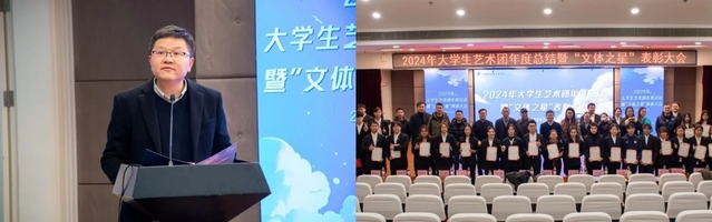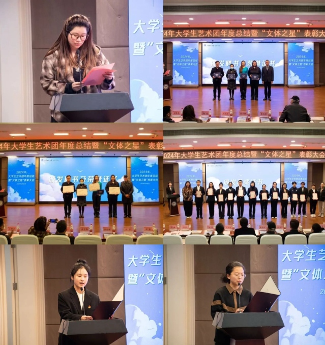 2023—2024学年,在学校党委、学保处的指导下,在校团委的带领下,我校大学生艺术团、各特色团队、文体社团积极参与校内外各级文体活动赛事。为进一步激发广大学生参与校园文体活动积极性,表彰学年中工作表现突出的个人,学校于2024年12月16日举行大学生艺术团年度总结大会暨“文体之星”表彰大会。