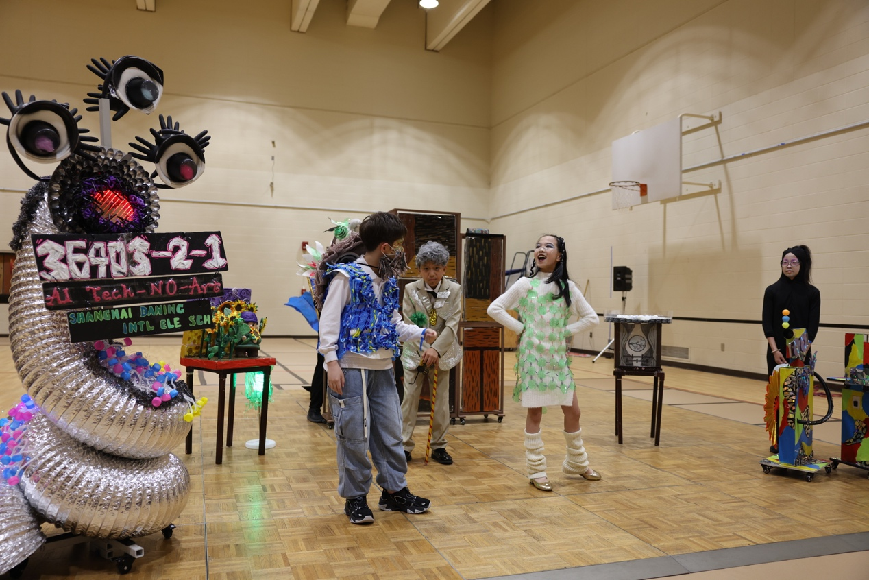 比如,在“太空深处的结构”题目的演绎中,太空深处的科学家可以是一只兔子,也可以是吸血鬼。在“人工智能装置”题目比赛中,上海市大宁国际小学在情节设计上利用装置穿越回过去和梵高相遇,实现未来与过去的对话,共同探讨艺术的本质。