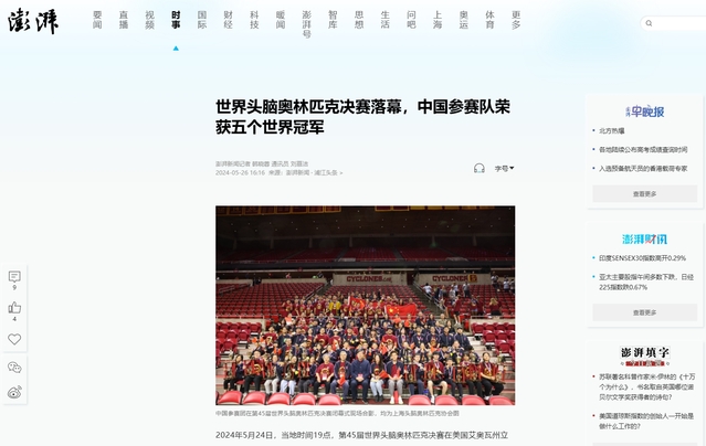 新闻链接:世界头脑奥林匹克决赛落幕,中国参赛队荣获五个世界冠军_浦江头条_澎湃新闻-The Paper