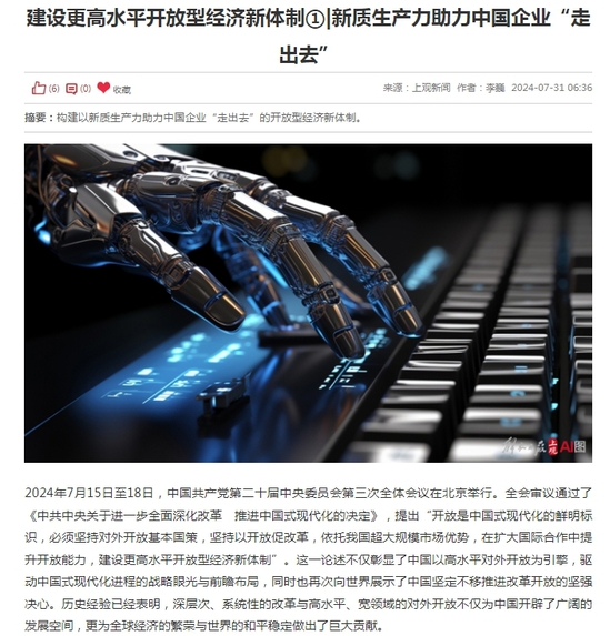 新闻链接:建设更高水平开放型经济新体制①|新质生产力助力中国企业“走出去”