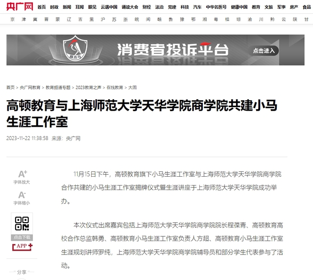 新闻链接:高顿教育与上海师范大学天华学院商学院共建小马生涯工作室_央广网 (cnr.cn)