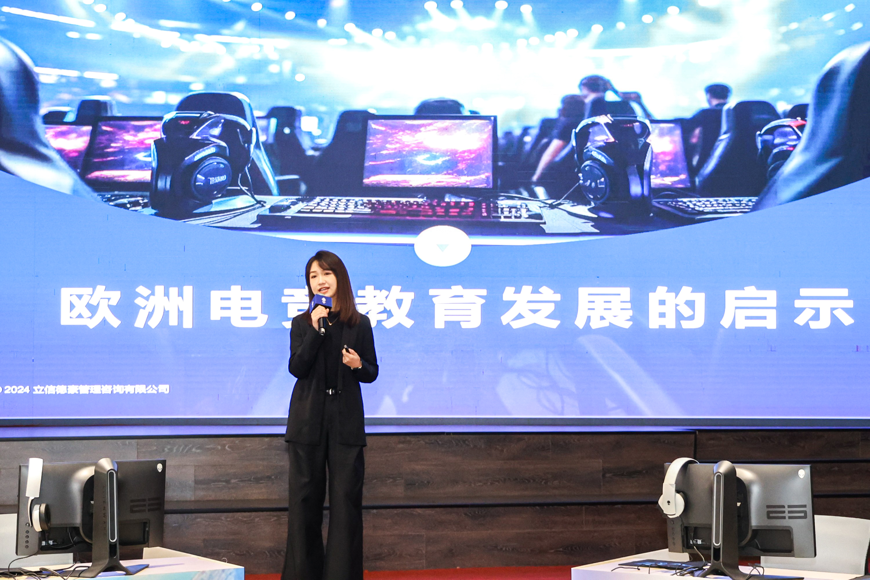 赛事主办方还特别邀请立信咨询经理王智荔,为在场师生介绍了当下海外高校电竞专业的教学模式和特点。通过对国际电竞教育的深入分析,帮助学生们拓宽视野、认识世界,激发教学从业人员对电竞教育的更多思考。