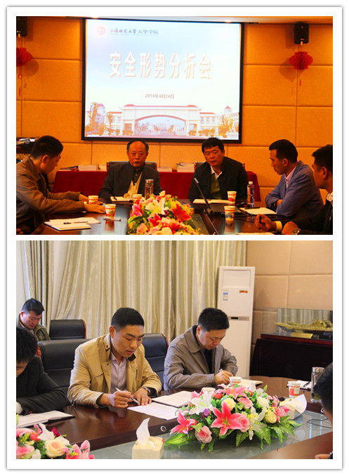 随着学校周边商业化程度不断提升,社情愈发复杂,学校安全环境面临巨大考验。为进一步查找问题,排查隐患,守牢校园安全底线,学校于4月24日在月华楼270会议室召开校园安全形势分析会。学校党委副书记、学保处处长曹云林、学校校监、学保处副处长周烨刚、学保处常务副处长刘天翔、各二级学院党总支副书记、嘉定高校派出所驻校民警周品兴以及学保处全体保卫干事参加分析会,会议由学保处副处长刘洪伟主持。