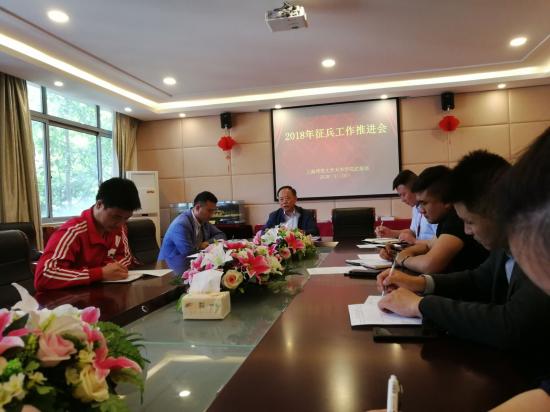 5月23日上午,为了认真贯彻落实上海市大学生征兵工作会议精神,进一步推动我校大学生征兵工作,学校武装部在月华楼270会议室召开2018年大学生征兵工作推进会。会议由校武装部副部长刘洪伟老师主持。校党委副书记、学保处处长曹云林老师、各二级学院党总支副书记参加了会议。