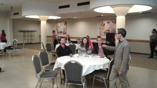 美国时间10月26日,正在美国伊利诺伊州立大学访学的艺术设计学院钟华勇老师,在“国际教育周”活动中,在Bone Student Center学生活动中心开展了一场有趣的视觉化的公开演讲,讲座题为《相比芝加哥,上海设计师的生存现状及设计趋势和风格》。来自伊利诺伊州立大学视觉设计学院的不同设计领域的20余名专业师生参与了讲座,包括来自6个国家的国际师生。戏剧舞蹈专业的专业主任Janet Wilson教授,学院办公室的Janet Tully教授,国际办公室Richael老师出席了讲座。