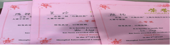 2017年11月4-5日,上海市外文学会、上海外国语大学跨文化研究中心、上海外语教育出版社和中国外语教材与教法研究中心共同主办的第二届“外教社杯”上海市高校学生跨文化能力大赛在上海外语教育出版社圆满落幕。来自上海各大高校的共22组选手参加了此次比赛,比赛形式包括表演展示、案例分析、评委提问三个环节,选手们对跨文化交际的理解和运用进行比拼。在英语专业范钦佩老师指导下,英语专业2014级学生吴玲、陆杨和隗钟乐组成的队伍代表我校参赛,最终获得了三等奖。