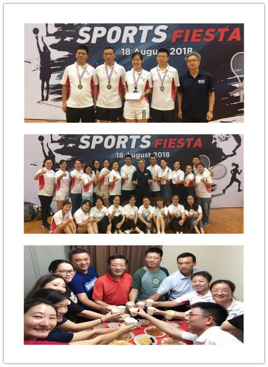 8月18日在NTU体育中心举办了南大校友体育嘉年华,我们有幸被邀请参加比赛。我校刘洪伟老师在参加“4*100米接力赛”中取得了季军名次。此次运动会不但增加了班级的凝聚力,更多的是提供了大家相互交流学习的平台,所有同学都到场为参与选手助威加油,度过了美好的一天。班级同学定期组织参加体育活动,养成运动习惯,改善身心健康,也为求学生涯增添力量。
