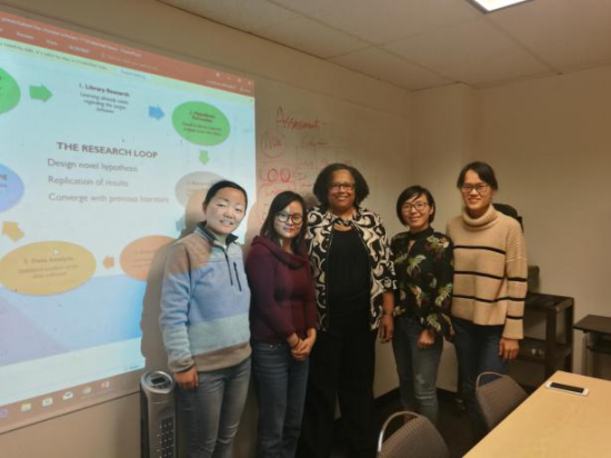一年一度的教育学术周是加州州立大学富勒顿分校教育学院学术交流的盛典。教育学院资深教授Dr. Person以Introduction to Research and Evaluation为题给访学团全体成员介绍了做研究课题的基本方法、科学步骤和她的亲身经验。除了非常详细的方法论介绍之外, Dr. Person更是带领全体成员参观她负责的教育研究工作室。大量的藏书,设计温馨细致的讨论室、明确的分工栏让大家对教育类的研究工作有了更直观的了解,心生敬畏。Dr. Tran深入浅出地讲解如何选题、撰写和发表论文的整个过程,并让大家跟随她的引导当场实践练习,很有成效。整个讲座下来,研修成员们对于如何进行学术研究有了全面的了解。