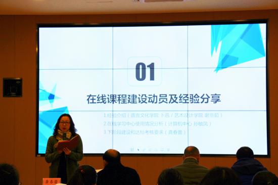 首先,学校从“在线学习中心”在建的课程中,遴选出了2门建设较完善的课程,邀请相应的主建教师进行经验分享。来自语言文化学院的卜迅老师主要从在线课程的资料、通知、作业和讨论几个模块分享了建设经验,详细介绍了作业模块知识点设置的操作步骤和优点,并推荐与会教师使用该功能;艺术设计学院的谢京茹老师,现场登录其建设的《数字图形设计》在线课程界面,用直观演示的方式向大家展示了其建设成果,建议大家在上传课程资料和视频时,要逐步放置,以保持学生的学习热情。