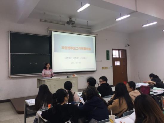 与此同时,毕业班的副辅导员们何凯、吕黎、狄怨怨也参加了此次主题班会,并督促同学们虽然临近毕业但仍要注意宿舍安全卫生,同时也向同学们明确了毕业时进行宿舍验收的各项要求和时间节点。最后,辅导员们细致地解答了毕业生们关心的就业毕业等各项问题,提供了有效的帮助,也对大家毕业论文答辩的各项要求再次进行了提醒,希望能够对他们的顺利毕业有所帮助,此次2017届毕业主题班会顺利圆满结束。