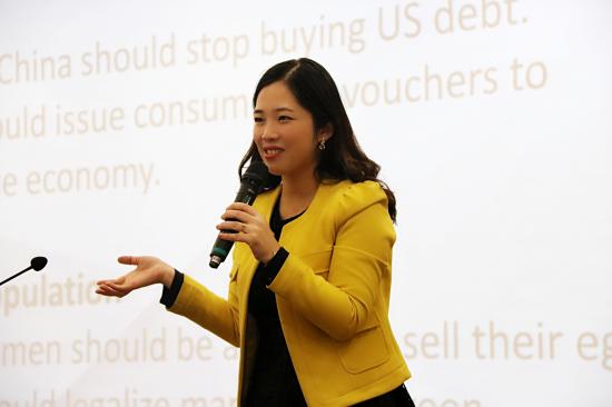 在机会篇中,胡雅楠副院长用风趣的语言为大家讲述了这些年来参加各类英语辩论比赛的经历。从高中时代组建第一只辩论队,到大学时期与其他高校辩论队进行火光四溅的辩论赛,身经百战的她强调在一场激烈的辩论赛上,快速语速与高度概括能力的重要性,她提到“有时候辩手们甚至需要在七分钟内陈述7张A4纸的内容”。