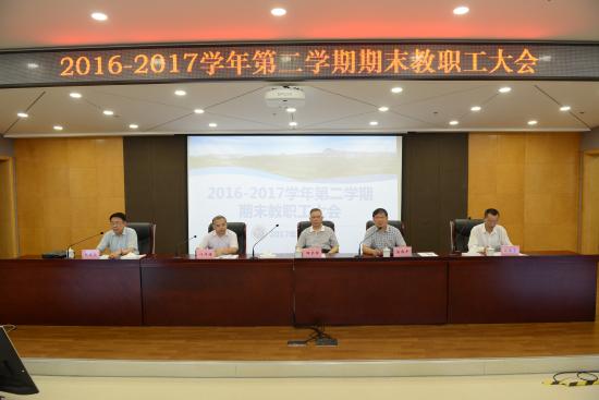 6月27日上午9时许,我校2016-2017学年第二学期期末教职工大会在晖华楼报告厅隆重举行。董事长邹荣祥、执行董事长石伟平、校长叶才福、总校监郭伟奇、特别顾问陆建非在主席台就坐,校务委员会全体领导以及教职员工出席了会议。会议由执行董事长石伟平主持。