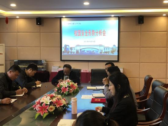 为认真做好党的“十九大”会议期间校园安全稳定工作,全面、深入地剖析校园安全教育工作和安全防事故工作中存在的倾向性、普遍性问题,学校学保处于10月16日在月华楼270会议室召开 “十九大”期间校园安全形势分析会。学校党委副书记、学保处处长曹云林、学保处常务副处长刘天翔、各二级学院党总支副书记及全体保卫干事参加会议,会议由学保处副处长刘洪伟主持。