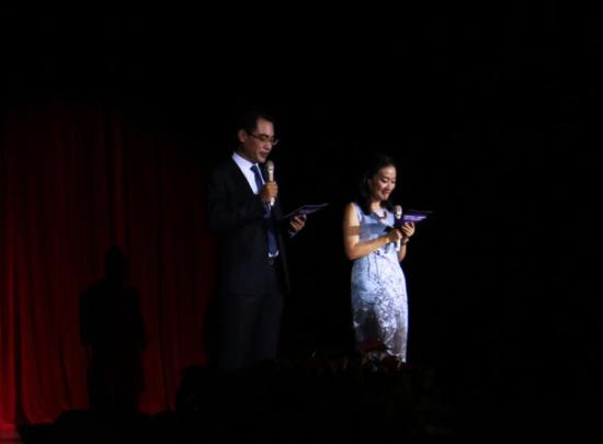 在“第一乐章——视频之光”中,副校长龚春蕾、副总校监史文、教育学院院长滕薇、健康学院党总支书记蔡勇永以及青年教师梁洁、全中元等人带来诗朗诵《天华陪伴你成长》。诗歌共分为责任、奉献、理想三篇章,用激昂的语言描述了“天华伴你成长”系列视频的发展历程和对学生成长的重要贡献。接着,一部由艺术设计学院副院长朱花策划拍摄的“天华陪伴你成长”视频纪实片,感动了在场师生。片中讲述了各视频策划人在视频制作上所经历的挫折、困难,承载着为这部系列视频辛苦奉献的老师的心声,同时也记录了视频投入使用后引来的热烈反响。