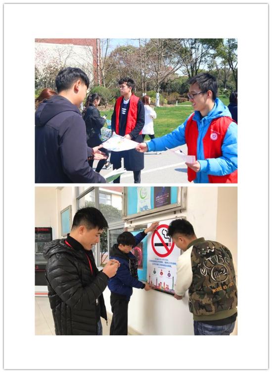 近日,学校的各教学楼、校园道路、生活区学生公寓,由学保处消防科组织的大学生控烟志愿者们,随机为路过的同学们送上宣传小海报,倡导他们支持新版控烟条例的规定,为了同学们的身体健康,共创无烟校园。