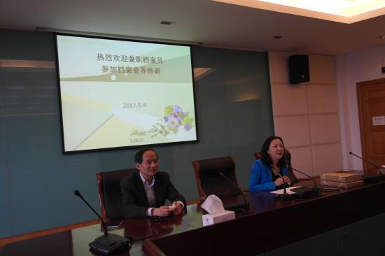 龚春蕾副校长首先就学校档案工作的基本情况作了回顾,对学校档案工作取得的成绩予以肯定,表示经过院校两级兼职档案员的辛勤努力,学校档案工作始终处在民办高校档案工作的前列,受到上级领导部门的表扬,但同时也存在着一些不足和短板。全体专兼职档案员要更加努力,通过此次培训会深入学习,回顾以往工作中的问题,查找不足,做好学校各个环节的档案归档工作,特别要重视教学档案的归纳、整理,要制定相应的时间表,规范高效的完成各级各门类档案的归档工作。