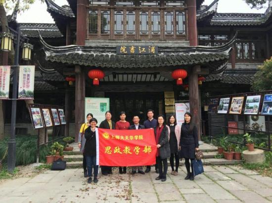 2017年4月5日上午,我校思政教学部组织思政课教师到浦江书院开展教学研讨。这次研讨会,主题是为落实中共中央办公厅、国务院办公厅印发的《关于实施中华优秀传统文化发展工程的意见》的要求而举办的。意见第一次以中央文件形式专题阐述中华优秀传统文化传承发展的工作。要求加强组织领导,贯穿国民教育始终,把优秀传统文化全方位融入思想道德教育。提升师资队伍水平。