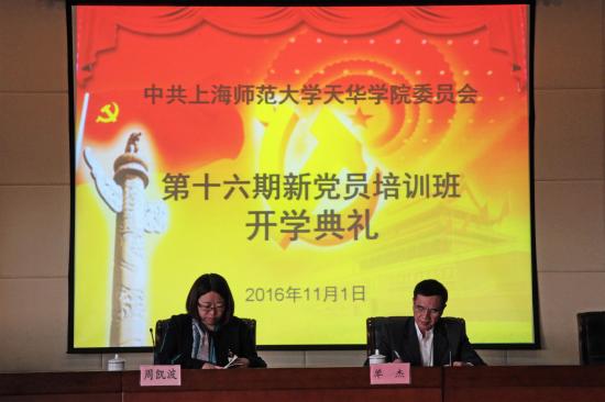 2016年11月1日下午4时20分, 我校第十六期新党员培训班开学典礼于明华楼报告厅举行,我校党委组织部长、党校校长周凯波出席,党校副校长单杰主持。3位教职工以及78名学生作为党校学员代表参加此次典礼活动。