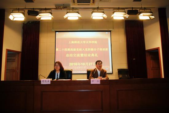 2016年10月27日下午,我校第24期高级党校入党积极分子培训班总结交流暨结业典礼在明华楼报告厅举行,组织部部长党校校长周凯波出席,党校副校长单杰主持。