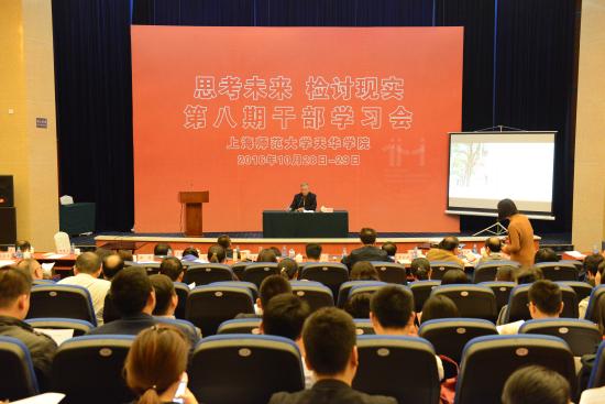 2016年10月28日和29日,我校在江苏苏州组织召开“思考未来,检讨现实”第八期干部学习会第二阶段集中学习活动,听取报告、分组研讨、交流发言。董事长邹荣祥,执行董事长石伟平,全体党政监领导班子、全体中层干部、助理,专业主任,以及各党总支正副书记,共120余人参加会议。