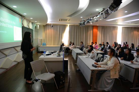 10月11日,Amanda与教育学院、健康学院、语言文化学院学生见面,畅聊美国教育体系及留学美国事项。Amanda首先介绍美国私立学校与公立学校的区别、课程、评价考核标准等情况,使学生对美国教育深入直观了解。随后,她细致介绍留学美国、继续深造需要注意的认证程序及需准备的材料,并一一解答在场学生对美国课堂活动、出国留学转换学分等问题的疑惑。