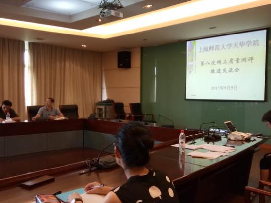 2017年9月5日,在学校明华楼会议中心召开了学校第八次网上质量测评推进交流大会。参会的有学校各处室、二级学院质量测评负责人及质量管理处督学吴素莲,共有53人到会。会议由质量管理处负责人陈道炯主持。