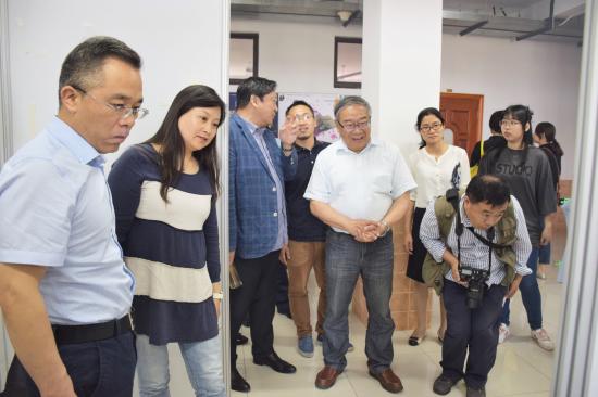 5月26日下午,上海群星职业技术学校校长顾晓光、副校长韩晓明一行26人到访我校,参观艺术设计学院毕业设计展,并进行了交流。艺术设计学院院长王大根、副院长徐子卿、朱花,以及各专业老师热情接到了到访客人。