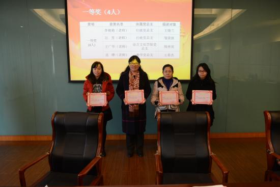 2016年1月7日下午,党委在明华楼五楼会议中心举行了“我身边的优秀共产党员”征文活动颁奖仪式,党委书记韩晓玉,副校长陈新斌,党委副书记曹云林、许岳为16位获奖师生颁奖。