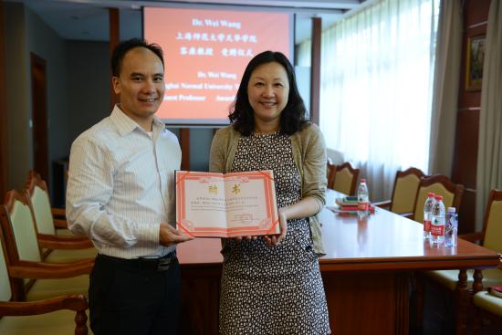 (龚春蕾副校长为王教授颁发客座教授聘书)