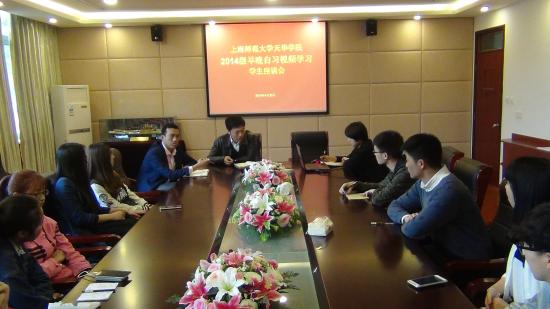 本学期开始,为了解决不同英语基础学生的差异性学习需求,根据学校统一安排对大一、大二年级早晚自习形式及学习内容进行了整体优化。2015级学生每周一晚自习增设“经典导读”视频学习,2014级根据英语四级成绩对早晚自习分层学习。为了全面了解学生的近期思想状况,2016年4月25日下午,学保处分别召开了2015、2014年级学生座谈会。学保处常务副处长刘天翔、副处长刘洪伟、处长助理郭阿诺,以及各二级学院学生代表20余人参加了座谈会。