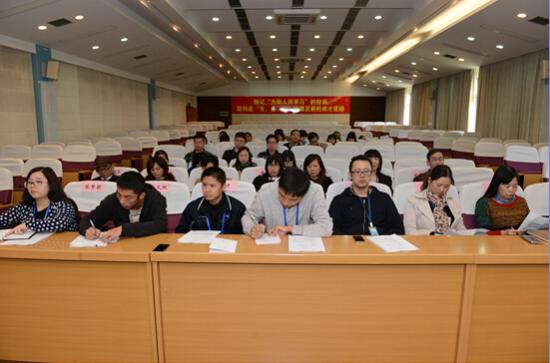 2015年11月2日中午12:10,资产设备处在明华楼报告厅组织召开了主题为“学习东山会议精神,提高服务保障质量”大会。资产设备处处长朱清,副处长董海霞、周建文,图书馆馆长吴志荣,网络中心主任许晓洁及资产设备处全体员工参加了大会,会议由资产设备处副处长董海霞主持。