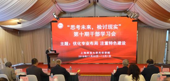 11月30日-12月1日,我校在上海青浦东方绿舟召开“思考未来,检讨现实”第十期干部学习会。此次学习会的主题是:优化专业布局,注重特色建设。学校董事长邹荣祥,副董事长冯水康,执行董事长石伟平,学校党政监领导班子、全体中层干部、助理、专业主任,以及各党总支正副书记等,共120余人参加会议。