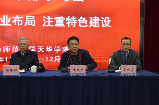 董事长邹荣祥作《适应转型需要,着力优化专业》的重要讲话。董事长指出,经过13年的艰辛探索和埋头苦干,天华已进入一个转型发展的新阶段。这是学校由粗放发展、概念设计向科学发展、精准设计阶段的转型,是一个从量变到质变的转型,是一个从纯粹民营的学校到一个完全公益学校的转型。董事长强调,在转型时期需要与时俱进地调整我们的发展战略和策略。在本学年初提出的优化专业设置、优化人事管理、优化创新举措、优化产业布局“四个优化”工作重点的基础上,今后学校较为完整的办学特色和发展战略是“抓两头”、“靠两边”、“重两本”、“倡两共”,即:在专业方向上一手抓老人,一手抓小人;在路径选择上,一手抓中外合作,一手抓本硕连读;在基础建设上,一手抓三双型教师队伍建设,一手抓教育学生做人;在发展成果上一手抓共建,一手抓共享。董事长表示,天华人既要保持清醒的头脑,又要抓住机遇,抓住重点,以实现天华的教育事业事半功倍与跨越式的发展。董事长认为,优化专业设置是成果实现学校转型发展的首要举措。董事长希望,全体天华人以良好的精神状态适应天华的转型发展。一是要充满想象力与创新思维;二是要抓住最核心的关键问题;三是要以主人翁的精神埋头苦干。