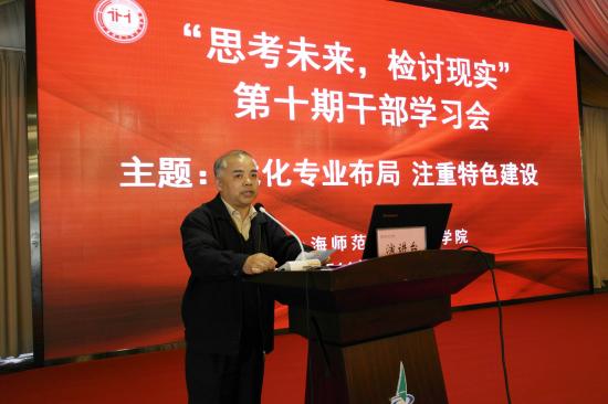 龚春蕾指出,我校经过13年的发展其特色要靠专业来体现,我们要通过学习会冷静的总结、超前的规划、认真的审视、科学的判断,优化专业布局为学校下一步的建设与发展做好顶层设计。随后,她就会议材料《各专业内涵特色与发展规划报告》进行了详细解读。接着,教育学院院长滕薇、健康学院院长祝亚平、艺术设计学院副院长徐子卿、语言文化学院常务副院长陈再阳、管理学院院长程葆青和工学院院长吴国兴分别汇报二级学院各专业办学现状与未来发展,他们的报告数据翔实、分析深刻、重点突出。