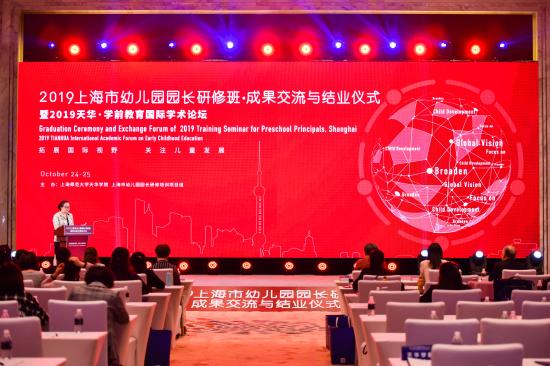 10月24日至25日,上海师范大学天华学院成功举办了2019年天华·学前教育国际学术论坛暨上海市幼儿园园长研修班成果交流与结业仪式。上海市教委人事处领导孙鸿、张瑾莅临指导,国内外学前教育前沿专家作了主旨报告和发言,研修班优秀学员交流展示了论文成果,结业仪式上专家和领导为参训园长颁发了培训结业证书、优秀学员证书和哈佛大学慕课结业证书。这次活动是一场精彩纷呈,以国际视野和关注研究儿童发展的学前教育学术盛宴,继上海市百名园长持续五个月三个阶段的阶梯式项目培训后,进一步为上海学前教育领域各区县的一线管理者、教科研工作者搭建了国际交流与专业合作的平台。