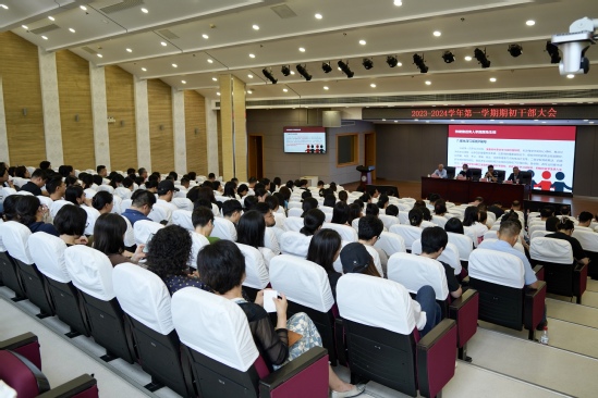 9月5日上午,学校在晖华楼报告厅召开2023-2024学年第一学期期初干部大会,部署新学年各项重要工作,拉开新学期工作序幕。学校执行董事长石伟平、党委书记陆建非、校长叶才福、总校监郭伟奇出席会议,全体校务委员会成员、中层以上干部、二级学院正副院长、职能处室正副处长、党总支正副书记、专业主任以及助理级干部参加会议。会议由执行董事长石伟平主持。